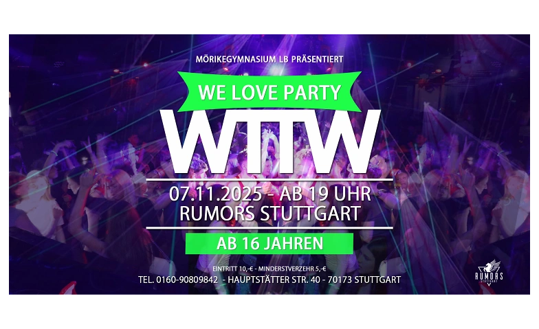 ☝️ Heute Abend ist der ganz normale Wahnsinn zusammen mit der JG1 des Mörikegymnasiums LB bei WTTW@RUMORS angesagt. We love Party bringt Euch die ultimativen Clubsounds ins Ohr – und ins Herz. Unfassbar big, unfassbar ausgelassen, unfassbar tanzbar!