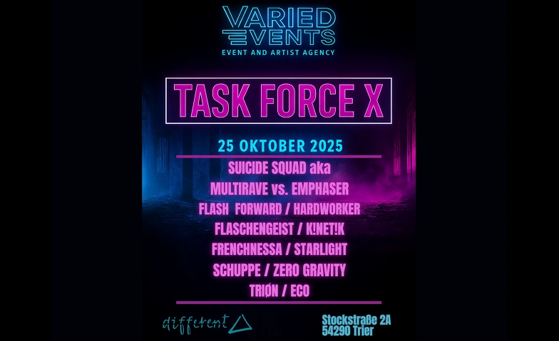 VARIED Events pres. TASK FORCE X wird organisiert durch:
