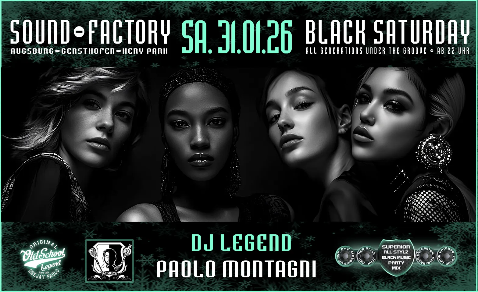 Eine garantiert unvergessliche Party-Nacht, die echten Black Music Vibe repräsentiert – mit DJ Paolo, dem Original, der seit über vier Jahrzehnten die Black Music in Augsburg und Umgebung prägt. Von den 70ern bis heute zieht er alle Gäste mit den besten Beats aus Old School, Hip-Hop, R’n’B, Reggaeton und aktuellen Club Bangern auf die Tanzfläche – immer Vollgas und 100%, mit Leidenschaft, Erfahrung und echter Nähe zu seinem Publikum. Nur seine Partys verbindet die Generationen – authentisch, energiegeladen und voller guter Stimmung. Wer schon einmal dabei war, weiß: Black-Saturday ist wirklich keine gewöhnliche Party, sondern jede Party ein Stück verewigte Musikgeschichte. Das darf man einfach nicht verpassen.