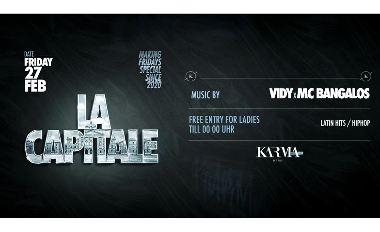 Get ready for LA CAPITALE on Friday, 27 February 2026! Enjoy an electrifying night filled with the best in Latin hits, hip hop, and French tunes, expertly mixed by @djvidy and @steezy.kaz.