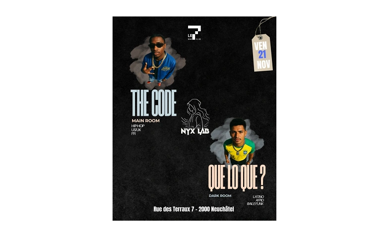 THE CODE VOL.4 X QUE LO QUE LE7 Club / Seven Club, Rue des Terreaux 7, 2000 Neuchâtel Tickets