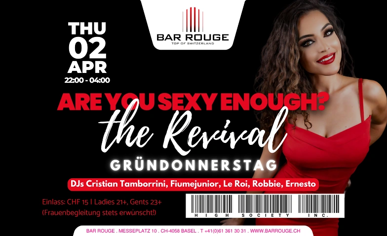 Are you sexy enough? Bar Rouge - Rooftop Bar & Club, Messeplatz 10, 4058 Basel Tickets