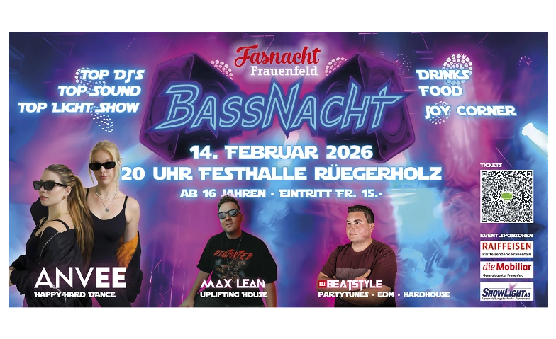 Fasnacht Frauenfeld - BassNacht 2026 Festhalle Rüegerholz Frauenfeld, Festhüttenstrasse 21, 8500 Frauenfeld Tickets