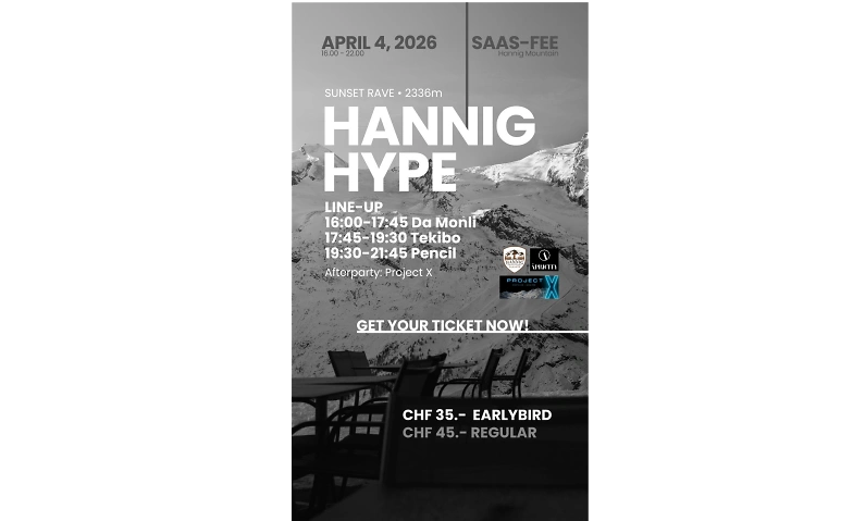 Hannig Hype Bergrestaurant Hannig, Saas-Fee, Hannigweg 40, 3906 Saas-Fee Tickets