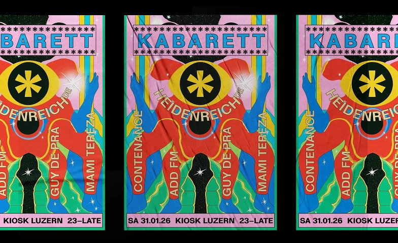 Unter bunten Lichtern erwarten dich pulsierende Beats und Feuerwerk. Dress up und werde Teil des Kabaretts auf 2 Floors im Kiosk! Hauptattraktion des Abends ist Heidenreich aus Deutschland. Weitere Darbietungen folgen von Contenance, Mami Tereza, Add FM und Guy De Prà.