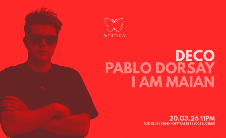 Known for crafting deep, mesmerizing sets that blend melodic techno, organic textures, and cinematic tensionMYSTIKA & Deco transform sound into emotion — every beat feels alive, every transition tells a story. This first Luzern appearance promises to be a night of pure connection and unforgettable energy.