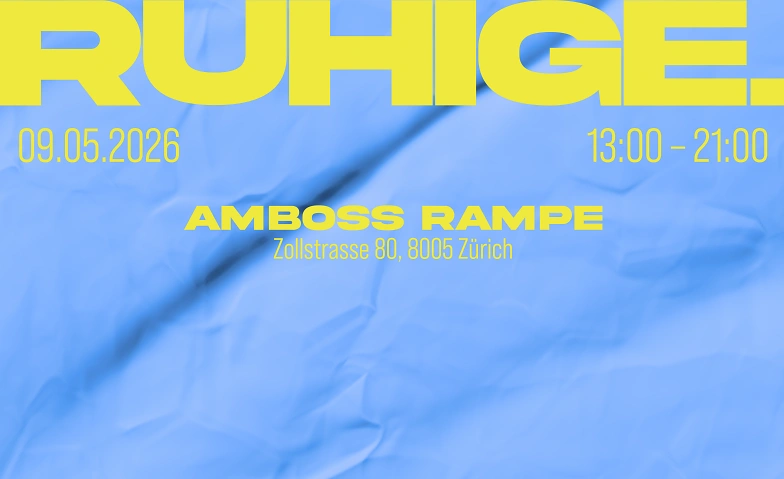 RUHIGE. lädt zum Daydance am Samstag 09. Mai 2026 in der Amboss Rampe in Zürich ein! 13:00 – 21:00 Uhr