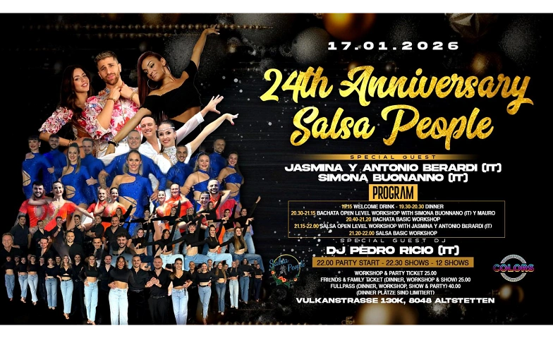 SALSA & BACHATA EVENT 24 JUBILÄUM SALSA PEOPLE COLORS DANCE CLUB, Vulkanstrasse 130k, 8048 Zürich Tickets