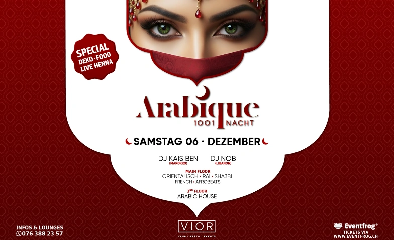 Am Samstag, den 06. Dezember, verwandelt sich der Vior Club Zürich erneut in ein orientalisches Erlebnis der Extraklasse! Mit der Arabique – 1001 Nacht erwartet euch eine unvergessliche Nacht voller arabischem Flair, stilvoller Mode und mitreissender Musik.