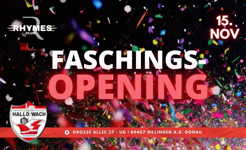 Die Faschingsgesellschaft Hallo Wach und der Rhymes Club Dillingen laden euch alle zum offiziellen Startschuss in die neue Faschingssaison ein: