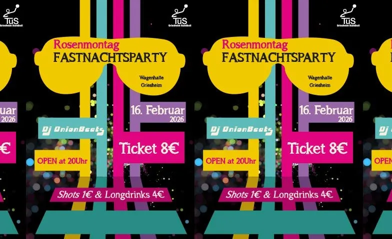 Am Rosenmontag, 16. Februar 2026, wird die Wagenhalle Griesheim ab 20.00 Uhr zur ultimativen Faschings-Partyzone!
