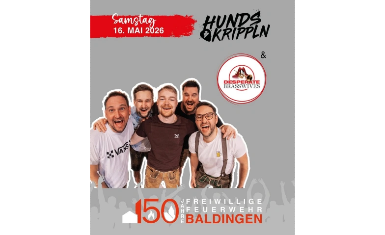 Die Freiwillige Feuerwehr Baldingen feiert 2026 ihr 150 jähriges Jubiläum. In diesem Zuge laden wir euch herzlich zu unserem Party-Special am Samstag, 16.05.2026 in unser Festzelt mit einem Abend voller Live-Musik ein.