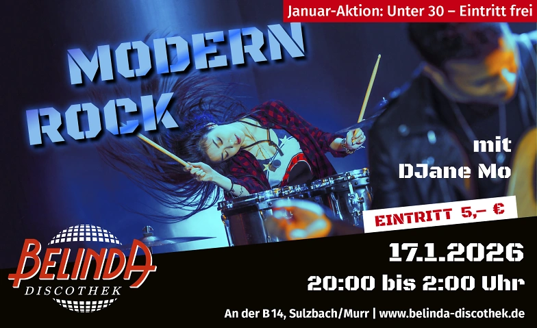 Modern Rock mit DJane Mo – Unter 30? Eintritt frei! Belinda Discothek, Backnanger Straße 78, 71560 Sulzbach an der Murr Tickets