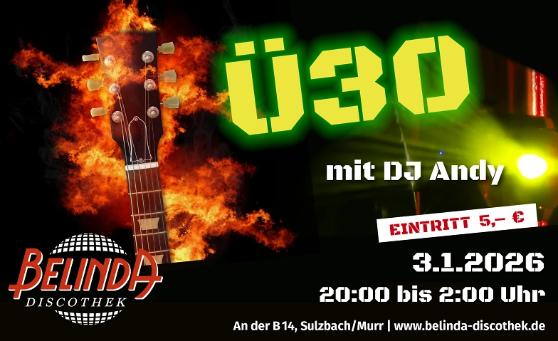Ü30 mit DJ Andy – Januar-Aktion – Unter 30? Eintritt frei! Belinda Discothek, Backnanger Straße 78, 71560 Sulzbach an der Murr Tickets
