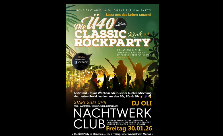 ► Location: Ü40-Party von Rock44 im Nachtwerk Club München, Landsberger Str. 185, 80687 München 📌