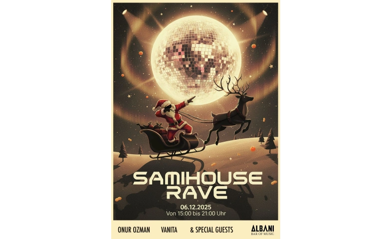 Der SamiHouse Rave ist ein vorweihnachtlicher Day Dance – mit Zimtduft, warmen Lichtern und jeder Menge Liebe zum Detail. Auf dem Main Floor legen Onur Ozman und Vanita House und Techno auf, das Rabbit Hole ist für Happy Trance und Bounce reserviert. Nebst dem üblichen Sortiment gibt es an der Bar diverse winterliche Heissgetränke. Und an der Tombola gibt es Geschenke für alle: von einem Mandarinli bis hin zum Hauptpreis, einer Übernachtung im Hotel Albani. Entstaubt eure besten Samichlaus-Sprüche und macht euch auf den Weg durch die klirrende Kälte!