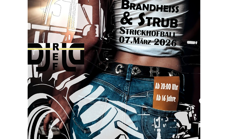 Strickhofball Brandheiss und Strub - endlich steigt sie wieder, die traditionsreiche Party an der landwirtschaftlichen Berufsschule Strickhof in Lindau! Für Stimmung sorgt dieses Jahr DJ Ref JD, die reichhaltig ausgestattete Bar beugt Dehydrierung vor, und in der gemütlichen Kafi-Stube kann man sich bei stimmiger Musik ums leibliche Wohl kümmern.