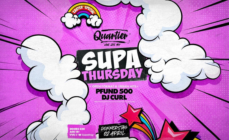 SUPA THURSDAY / DO 02. APRIL @ QUARTIER Klub QUARTIER Klub, Stadthausgasse 13, 8200 Schaffhausen Tickets