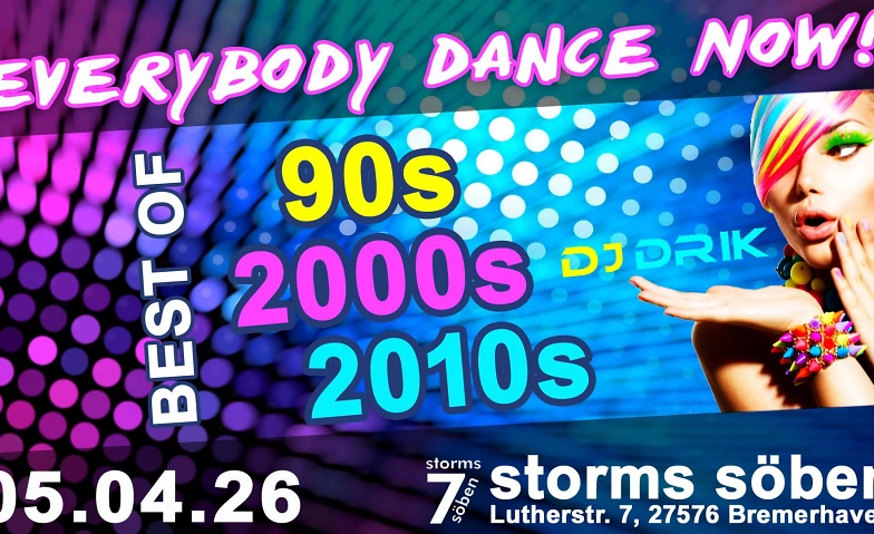 Everybody Dance Now – Best of 90s, 2000s & 2010s storms söben, Lutherstraße 7, 27576 Bremerhaven Tickets
