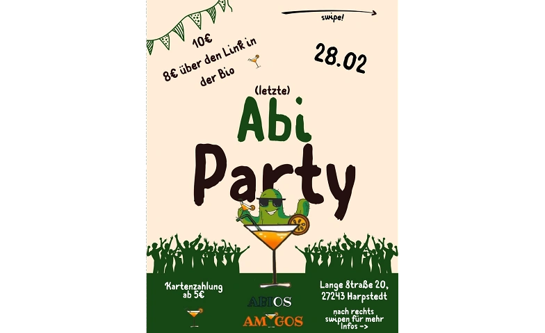 Am 28.02.26 feiert der Abiturjahrgang des Gymnasium Wildeshausens seine vierte Abiparty im Marktkieker Harpstedt🎉🎉🪩.Die  Party beginnt um 21:00 mit einer Happy  Hour 🍻.Du und deine Freunde seid herzlich eingeladen um mit uns eine unvergessliche Party zu feiern. Infos zu Preisen und weiteren Angeboten folgen über den Instagram Account des Abiturjahrgangs 2026 vom Gymnasium Wildeshausen.