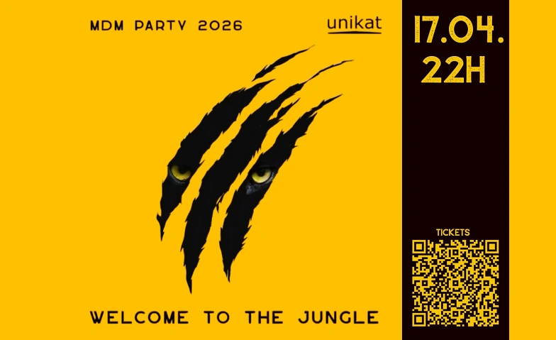 Tragt euch für den 17. April 2026 um 22:00 Uhr die MdM Party rot im Kallender ein. Diese Party ist die größte dieser Art in Witten und nicht nur von Student:innen für Student:innen sondern auch für alle jungen Wittener:innen, Azubis und Abiturient:innen. Jedes Frühjahr- und Herbstsemester legt sich das Team des Unikat e.V. voll ins Zeug, um mit dieser fette Party für einen guten Start in das Studienhalbjahr zu sorgen. Früher war dieses Event eine geschlossene Veranstaltung der UWH, aber seit ein paar Jahren kannst du auch mit dabei sein! Die MdM Party öffnet ab 22:00 bis 06:00 Uhr die Tore für ein krassen Semester-Kick-Off. Diesmal mit dem Motto Welcome to the Jungle.