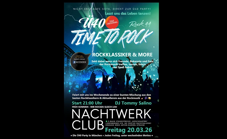 ► Location: Ü40-Party von Rock44 im Nachtwerk Club München, Landsberger Str. 185, 80687 München 📌