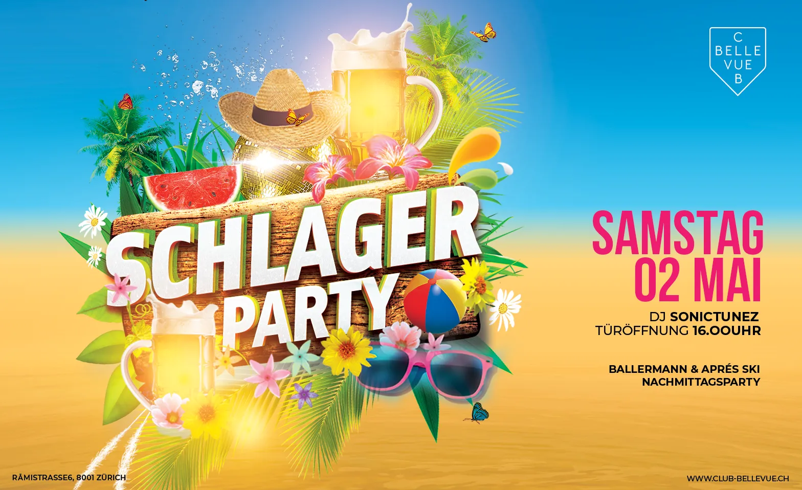 SCHLAGER PARTY Club Bellevue, Freieckgasse 9, 8001 Zürich Tickets