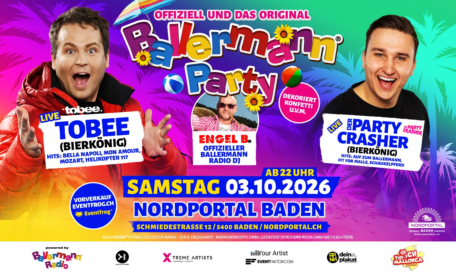 Ballermann Party - mit Tobee & Der Partycrasher Nordportal, Schmiedestrasse 12/14, 5400 Baden Tickets