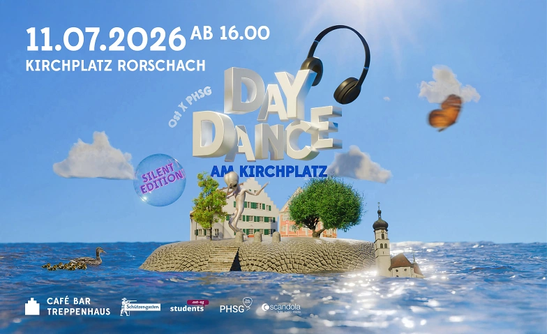 Die Party findet auf dem Kirchplatz Rorschach direkt neben dem Treppenhaus statt. Der Bahnhof Rorschach Stadt ist 400m entfernt. Google Maps