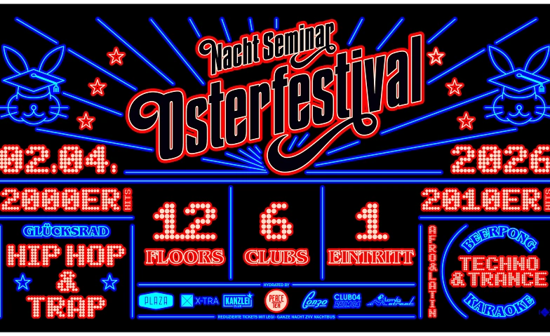 12 Floors, 6 Clubs, 1 Eintritt - das ist das Nachtseminar Osterfestival! Bist du bereit für das grösste Nachtseminar aller Zeiten? 🎉