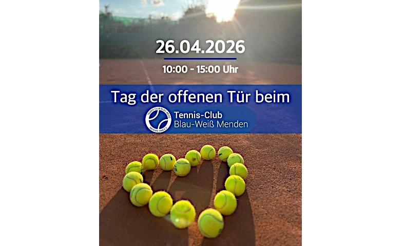 Am Sonntag, den 26.04.2026 lädt der TC Blau‑Weiß Menden alle Tennisinteressierten herzlich zu einem Tag der offenen Tür auf seine Anlage ein. Ob Anfänger, Wiedereinsteiger oder einfach Neugierige – alle sind willkommen, den Tennissport unverbindlich kennenzulernen und selbst zum Schläger zu greifen.