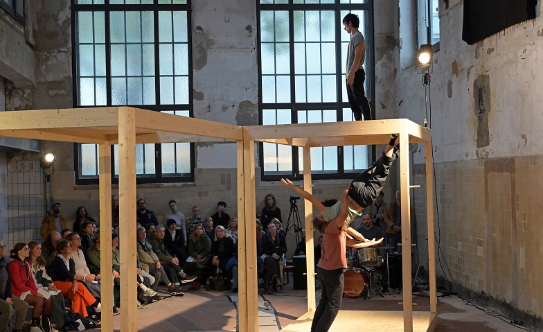 Mit CELLULA suchen Maja Zimmerlin und Umberto Freddi die Grenzen traditioneller Bühnenkunst zu sprengen – Bewegung, Akrobatik und Architektur verschmelzen zu einem lebendigen, atmenden Raum. Diese mobile Struktur verwandelt öffentliche Plätze in immersive Erlebnisse, in denen das Publikum nicht nur zusieht, sondern spürt, wie die Zeit langsamer wird, der Atem sich vertieft und Verbindung entsteht.