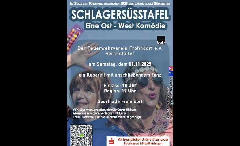 Kabarett -Schlagersüsstafel- Kreiskulturwochen 2025 LK SÖM Sporthalle Frohndorf, Dorfplatz 1, 99610 Sömmerda Tickets