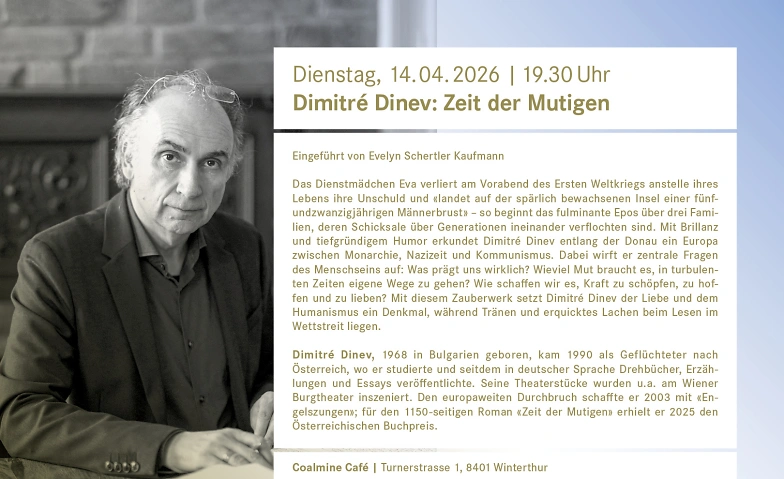 Dimitré Dinev: Zeit der Mutigen Coalmine, Turnerstrasse 1, 8400 Winterthur Tickets