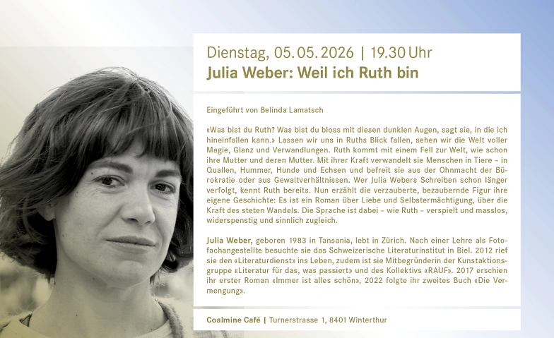 «Was bist du Ruth? Was bist du bloss mit diesen dunklen Augen, sagt sie, in die ich hineinfallen kann.» Lassen wir uns in Ruths Blick fallen, sehen wir die Welt voller Magie, Glanz und Verwandlungen. Ruth kommt mit einem Fell zur Welt, wie schon ihre Mutter und deren Mutter. Mit ihrer Kraft verwandelt sie Menschen in Tiere – in Quallen, Hummer, Hunde und Echsen und befreit sie aus der Ohnmacht der Bürokratie oder aus Gewaltverhältnissen. Wer Julia Webers Schreiben schon länger verfolgt, kennt Ruth bereits. Nun erzählt die verzauberte, bezaubernde Figur ihre eigene Geschichte: Es ist ein Roman über Liebe und Selbstermächtigung, über die Kraft des steten Wandels. Die Sprache ist dabei – wie Ruth – verspielt und masslos, widerspenstig und sinnlich zugleich.