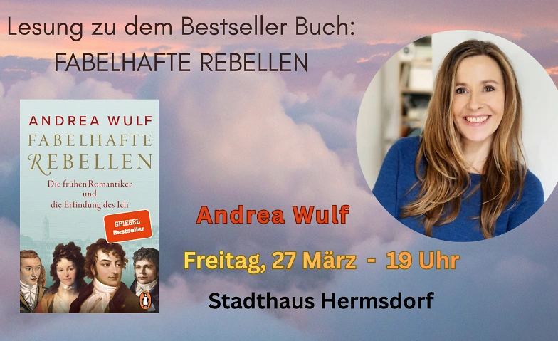 Ein besonderer literarischer Abend erwartet das Publikum am 27. März um 19 Uhr im Stadthaus Hermsdorf: Die international renommierte Bestsellerautorin Andrea Wulf stellt ihr vielbeachtetes Buch „Fabelhafte Rebellen – Die frühen Romantiker und die Erfindung des Ich“ vor.