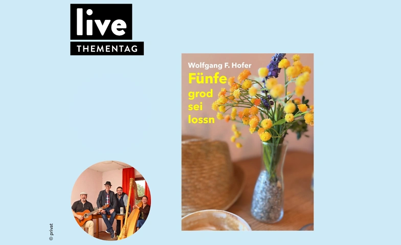Der bayrische Autor und Liedermacher Wolfgang F. Hofer ist gemeinsam mit Gitarrist Albert Zimmerer, Harfenistin Elisabeth Lohmaier-Wachinger