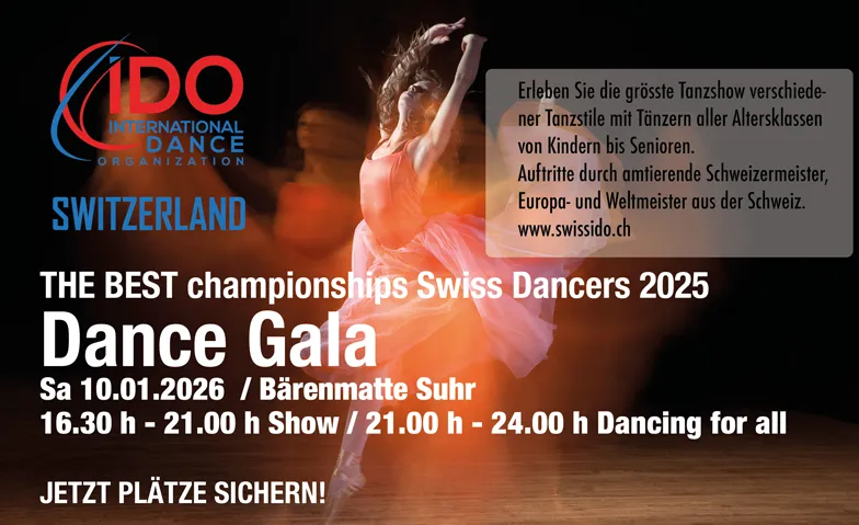 Mehr Infos finden Sie: 10.1.2026 Dance Gala Show Swiss IDO: 50 Best Swiss Dancers Swiss- Europe- or World Championships - IDO Switzerland | IDO Switzerland