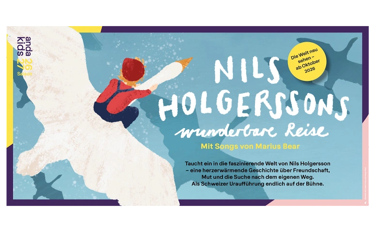 Nils Holgerssons wunderbare Reise ist ein modernes, musikalisches und herzerwärmendes Stück über Freundschaft, Mut, Verantwortung und den Blick auf die Welt, der sich verändert, wenn man plötzlich ganz klein ist. Ein Theatererlebnis für Familien, das nachhallt – im Kopf und im Herzen.