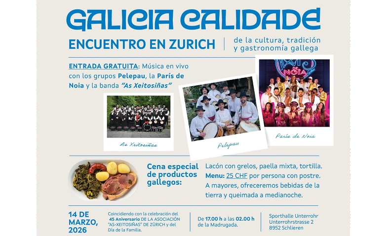 45 Aniversario y día de la familia de la ASC "As-Xeitosiñas" Sporthalle Unterrohr - Schlieren, Unterrohrstrasse 2, 8952 Schlieren Tickets
