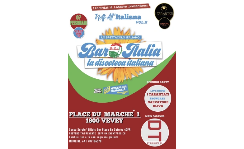 La serata sarà Caratterizzata da una buona cucina Italiana, al quale è quasi impossibile resistere alla tentazione di assaggiare; e da un'animazione che vi farà cantare, ballare, sognare tutti insieme con: