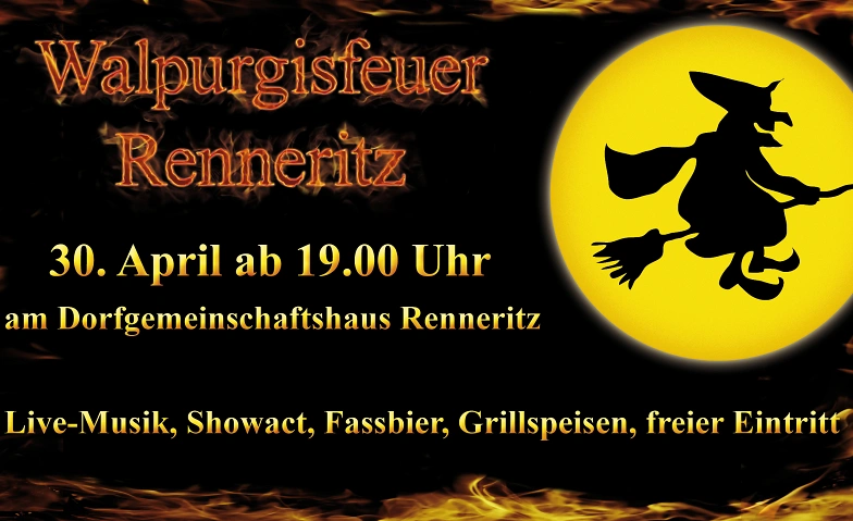 Der Heimatverein Renneritz lädt auch in diesem Jahr wieder herzlich zur stimmungsvollen Walpurgisnacht am Mittwoch, den 30. April, rund um das Dorfgemeinschaftshaus Renneritz ein. Ab 19:00 Uhr erwartet die Besucher ein geselliger Abend voller Tradition, Musik und fröhlichem Beisammensein.