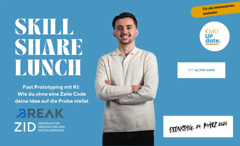 Am 24. März 2026 zeigt Altin Hani, Co-Founder der Break GmbH im ZID Bernapark, wie du digitale Ideen schnell und pragmatisch testest, bevor du Zeit und Geld investierst. In einer Live-Demo mit dem Tool Lovable erlebst du, wie aus einer Idee in kurzer Zeit ein funktionierender Prototyp entsteht.