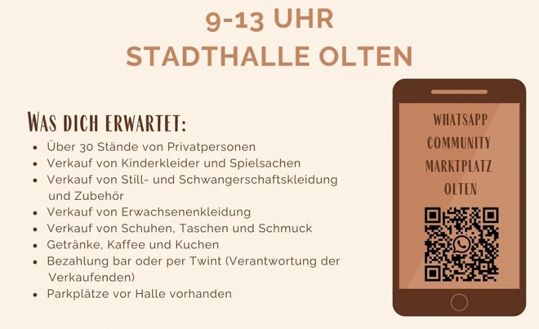 Search Filters Events in which will take place Today Tomorrow This weekend in Art & Exhibitions Art & Exhibitions / Exhibition Guided tours & lectures Guided tours & lectures / Guided tour Health & Spirituality Markets Miscellaneous Parties . Reset filters This weekend: Markets in Olten Register your event Event group until Dec 26 Wochenmarkt Bifangstrasse 39 Events Bifangstrasse, Olten (CH) Mar 21 Kinder & Erwachsenen Flohmarkt 21 March, Saturday, 09:00 Stadthalle Olten, Olten (CH) Missing your event? Register your event with just a few clicks here and benefit from additional marketing opportunities. Create event
