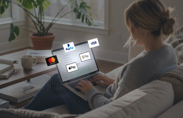 PayPal, Apple Pay, Google Pay, Visa, Mastercard – plus prepayment and cash payment on site.