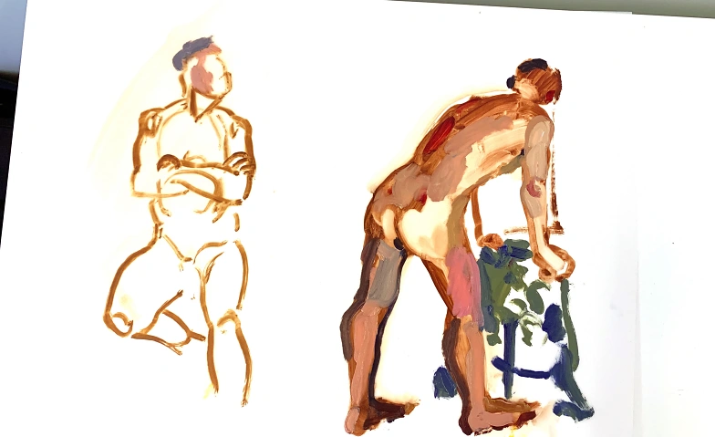 Seit 2022 veranstalten wir wöchentliche Aktzeichen-Sessions mit einem Aktmodell – mit kurzen und längeren Posen. Die Sitzung beginnt mit schnellen Posen (2, 3, 5 und 15 Minuten), gefolgt von zwei längeren Posen à 30 Minuten. Zwischen den Blöcken machen wir jeweils 5–10 Minuten Pause, um uns zu erholen, auszutauschen und Tee sowie Kekse zu genießen.