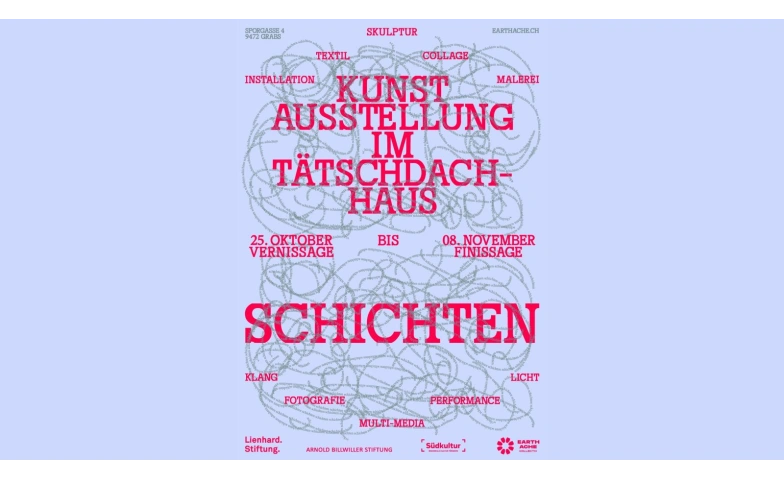 15 Künstlerinnen und Künstler zeigen zeitgenössische Werke im ältesten Haus von Grabs. Die Ausstellung Schichten – Kunst im Tätschdachhaus lädt dazu ein, das historische Gebäude neu zu entdecken. Inmitten der jahrhundertealten Architektur entfalten sich Werke, die das Thema „Schichten“ vielfältig interpretieren – von sichtbaren Oberflächen bis zu verborgenen Ebenen, von persönlichen Erinnerungen bis zu gesellschaftlichen Strukturen.