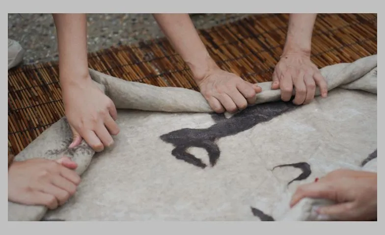 Die Schweizer Designerinnen Alix Arto und Emma Casella haben sich mit der chinesischen Designerin Yihan Zhang von der Róng Design Library für das Projekt „Herding Wool“ und mit Nina Conrad von Fibershed DACH für eine Wollbibliothek zusammengetan, um Lieferketten und die kulturelle Bedeutung von Wolle zu erforschen. Das Filzen dient als Brücke zwischen Tradition und Innovation: durch die Kombination