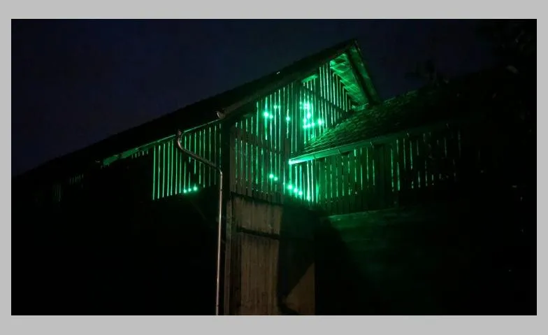 Die durchlässige Bauweise der Zigerlihütte lässt das grüne Neonlicht aus dem Innern erstrahlen und der dumpfe Sound der Transformatoren dringt nach aussen in die Stille der Nacht. Alles was drinnen passiert, kann von aussen wahrgenommen werden. Die Grenzen von innen und aussen verschwimmen. Die Zigerlihütte interagiert dabei ständig mit der Umwelt.