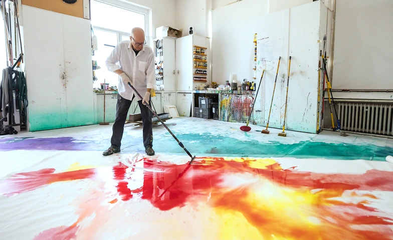 Auf diese Art und Weise entstehen mitunter großformatige „koloristische Schwemmlandschaften“, die den ganzen Prozess sichtbar machen.